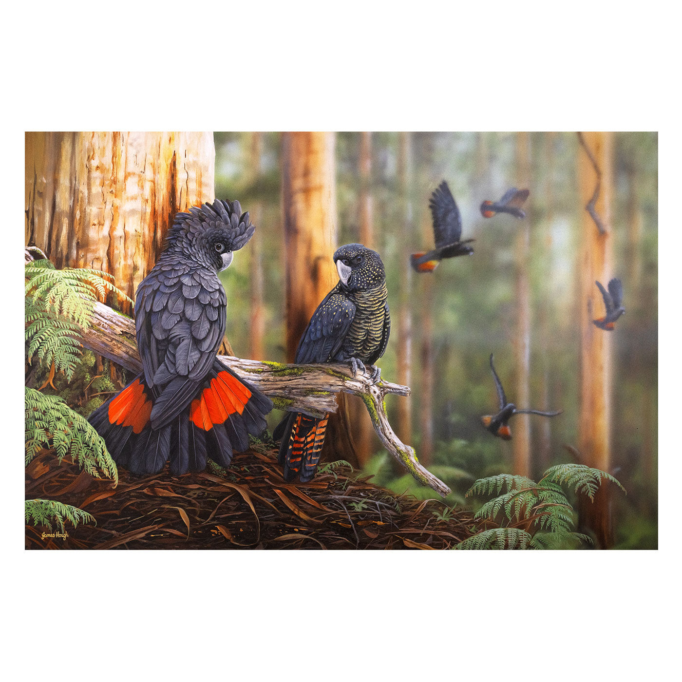 Discover the beauty of Australia’s native birds with the Australian Geographic 1000 Piece Jigsaw: Untamed Harmony. Featuring the magnificent artwork of James Hough, one of Australia’s most respected wildlife painters, this puzzle captures the striking contrast and elegance of red-tailed black cockatoos in their forest habitat.