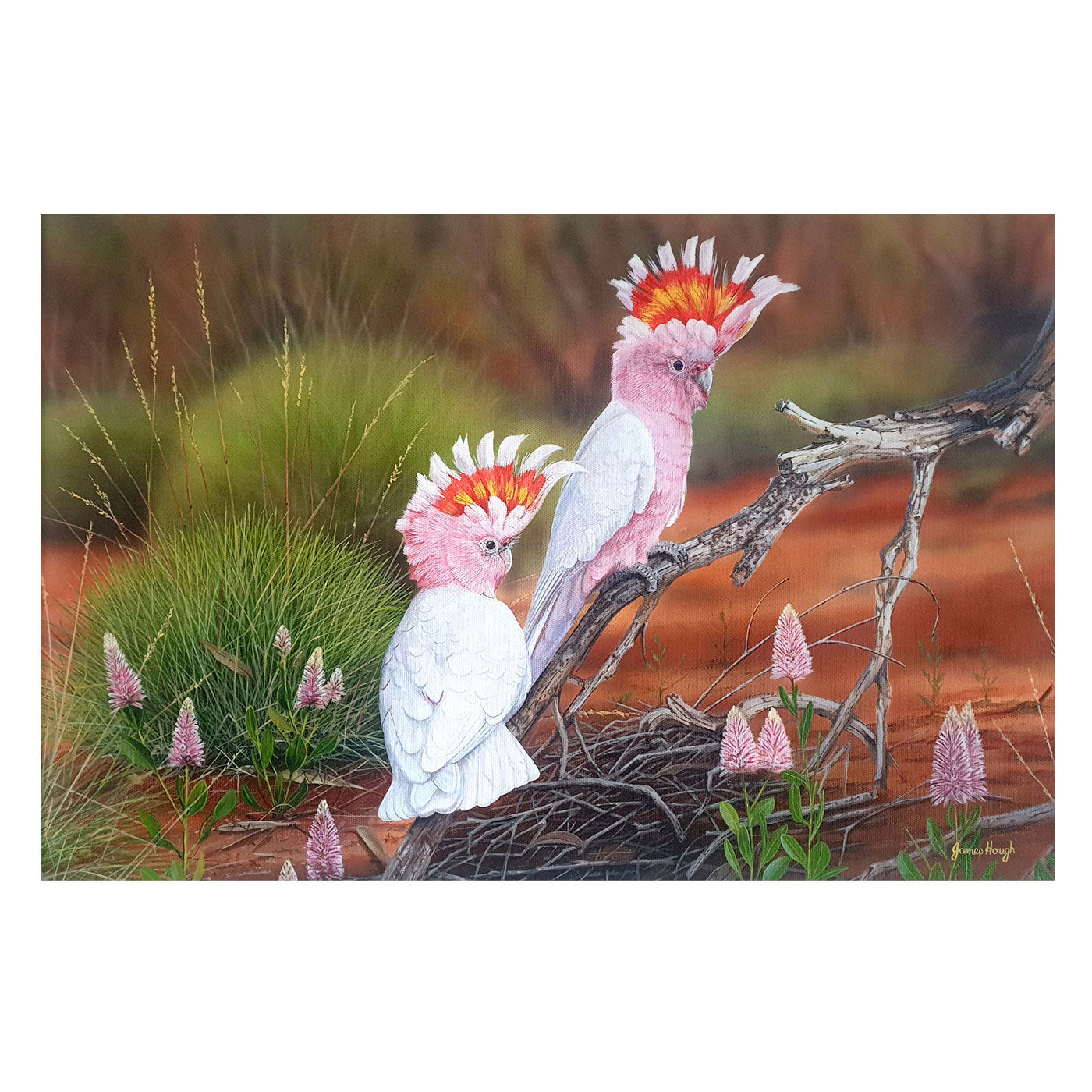 Immerse yourself in the beauty of Australia’s native wildlife with the Australian Geographic 1000 Piece Jigsaw: Mulla Mulla Mallee and Majors. Featuring the breathtaking artwork of James Hough, one of Australia’s leading wildlife painters, this puzzle captures the vibrant pink hues of Major Mitchell’s Cockatoos set against the delicate blooms of Mulla Mulla in the red-earth landscape of the mallee.