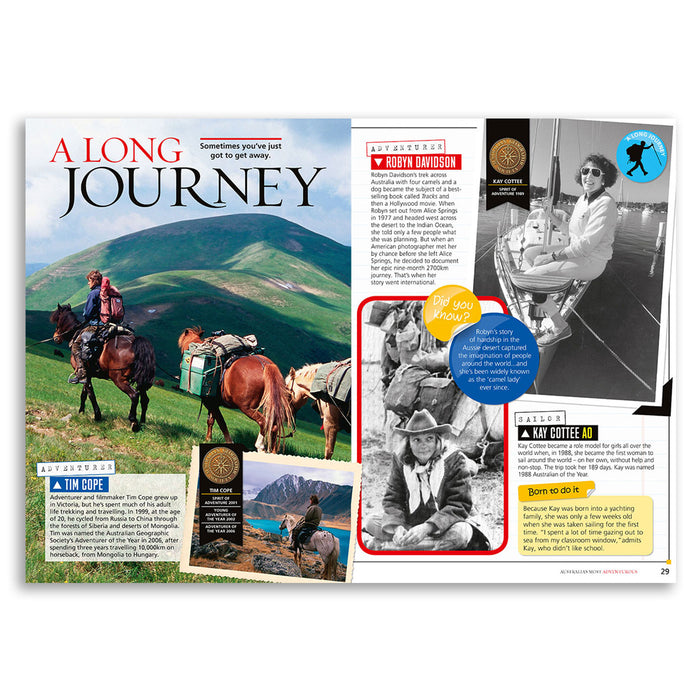 Australia’s Most Adventurous celebrates the inspiring stories of Australians who’ve pushed the limits of courage and endurance. From solo sailing voyages and desert crossings to mountain climbs and polar expeditions, these true tales highlight the grit, resilience and spirit that define great adventurers. An engaging read that encourages young Australians to dream big and explore the world with confidence.